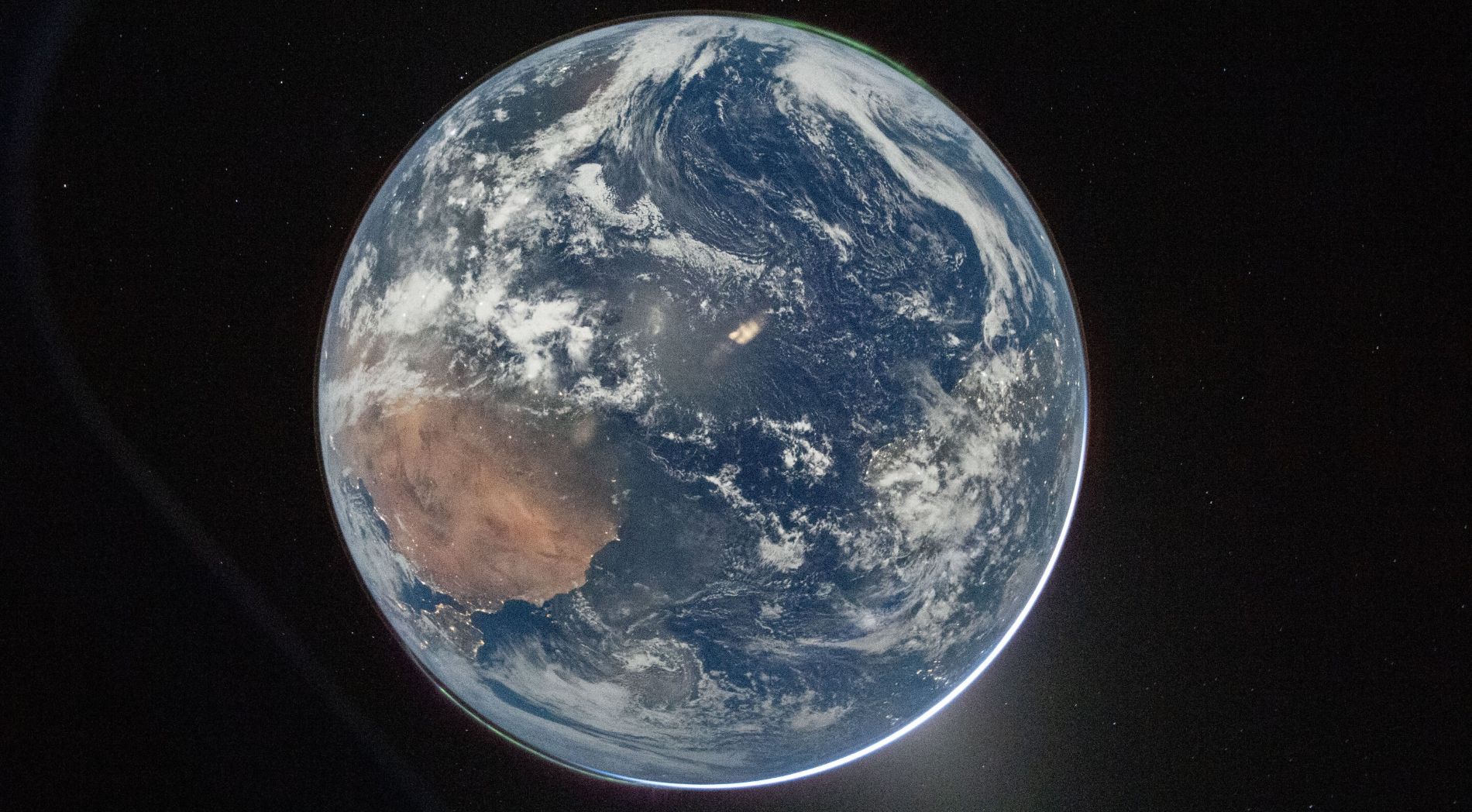 The images, released by NASA, were taken about a day and a half into the mission and show Earth as a bright blue sphere surrounded by swirling white clouds, with a green aurora visible from space.