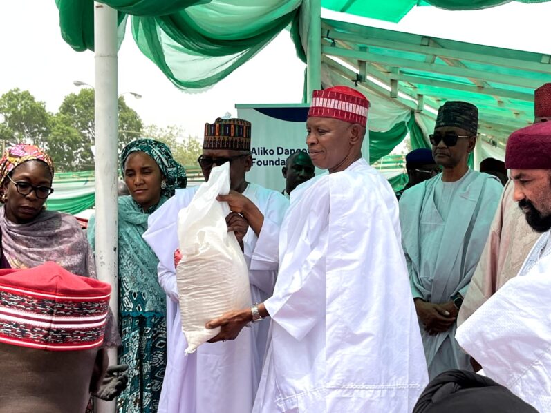 The Aliko Dangote Foundation (ADF) on Saturday, 23 March launched its Food Intervention Programme, in Kano State with the distribution of 120,000 bags of rice. The ADF claims its program worth N15 billion is targeted at distributing food palliatives across Nigeria, to cushion the pangs of economic hardships the masses are experiencing. The foundation aims to distribute over one million 10kg bags of rice across the 774 Local Government Areas of the 36 states and the Federal Capital Territory. The rice distribution programme which commenced in Kano with a flag-off ceremony will be expanded to all the other 36 states and the FCT over the next two weeks. Speaking at the flag-off of the program in Kano State at the weekend, the chairman of Aliko Dangote Foundation and group president of Dangote Industries Limited (DIL), Aliko Dangote, also emphasized the importance of compassion and encouraged generosity amongst citizens during the holy month of Ramadan.
