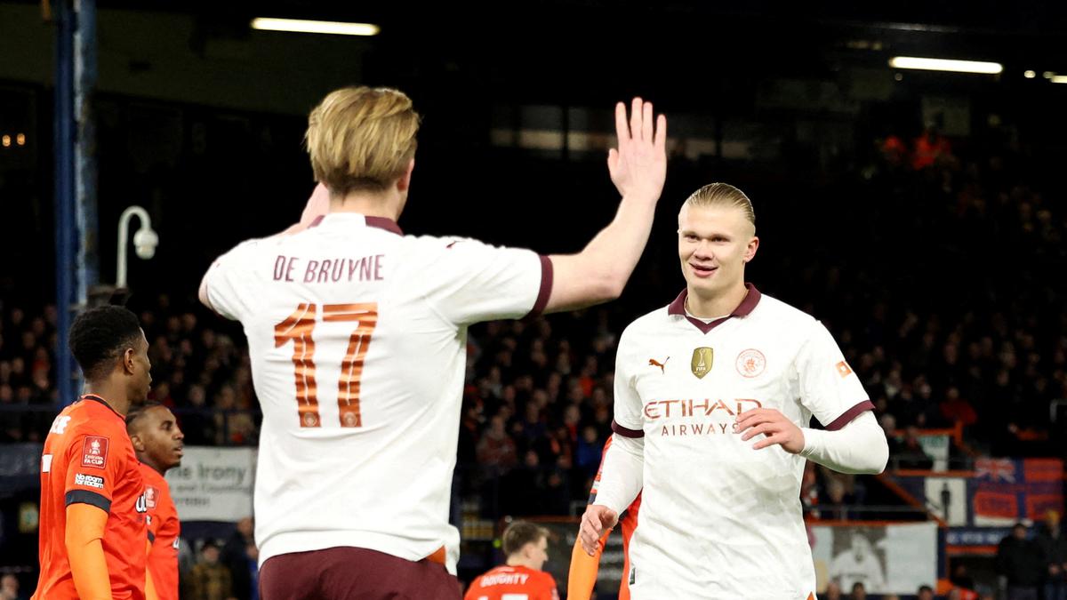 Manchester City’s Erling Haaland scored five times as the FA Cup holders ran riot in a 6-2 rout of Luton in the fifth round on Tuesday. It was the second time Haaland had hit five goals in a single game for City after his heroics in the Champions League last 16 second leg win against RB Leipzig in March 2023. Aided by Kevin De Bruyne’s trio of assists, Haaland completed his treble inside the first 40 minutes at Kenilworth Road. Jordan Clark struck twice to briefly reduce Luton’s deficit to just 3-2. But any Luton hopes of an incredible comeback were ruthlessly erased by Haaland as the Norway striker scored twice more after the interval to send City into the quarter-finals. Mateo Kovacic netted to cap City’s second six-goal haul this season after their 6-1 thrashing of Bournemouth in the Premier League in November. Haaland now has 27 goals in all competitions this season, making a mockery of the critics who took a swipe at him after a misfiring display in a recent draw against Chelsea.