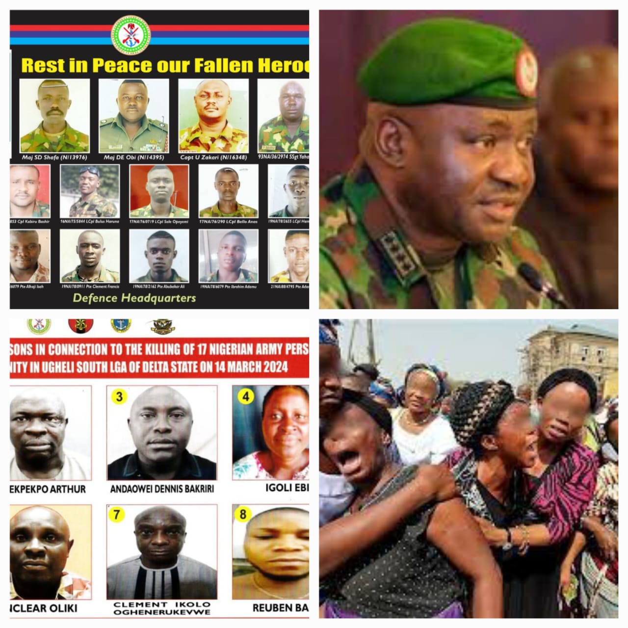 The community heads of Okuama in Ughelli South Local Government Area, Delta State, have made a frantic call for information on the remains and location of villagers’ bodies who lost their lives during the gruesome attacks of Thursday, 14 March 2024 involving the deaths of 17 army officers and soldiers—alleging the military had buried the victims in a mass grave while the others were dropped inside the river. According to reports, the Okuama heads claim that the community emptied on March 14 as residents fled to safety away from soldiers’ bombardment that ensued killing some and a second attack by gunmen, who murdered troops and villagers at the waterside. Saying stock of their dead is yet determined given the series of unfortunate events leading to this juncture, and the military’s takeover of the community barring access to inhabitants. They allege that while the army has claimed its fallen soldiers, residents have neither entered the community to account for their dead nor bury them as appropriate. Maintaining that since the incident of 14 March, the army, knowing the murderers of its personnel, is bent on implicating Okuama’s poor farmers, fisherwomen, and men.