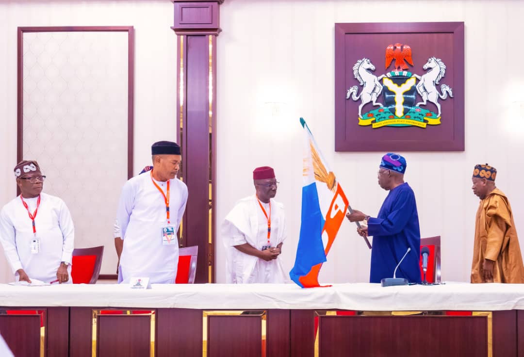 President Bola Tinubu yesterday offered to support the governorship candidate of the All Progressives Congress (APC) in Edo State, Senator Monday Okpebholo, during the election. The President presented the party’s flag to the candidate and his running mate, Dennis Idahosa, at the State House in Abuja. A statement by his Special Adviser on Media and Publicity, Ajuri Ngelale, said President Tinubu looked forward to the triumph of the Okpebholo/Idahosa ticket at the poll. Addressing a gathering of party stalwarts, led by the APC National Chairman, Dr. Abdullahi Ganduje, the President said the party would stand with the candidates ‘’like the wall of Gibraltar.” He said: ‘’If you are happy; we are happy. If you are determined; we are determined. We are going to work with you. We are going to stand with you like the wall of Gibraltar. That is all I can assure you.